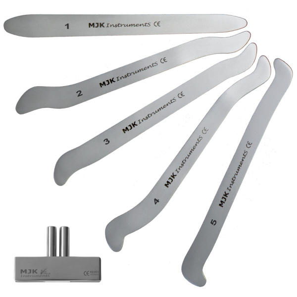 - Écarteurs n°4 et 5 (RE0014 et RE0015) : destinés plus précisément aux secteurs molaires, en vestibulaires en lingual et en palatin, mais également dans les secteurs antérieurs, en lingual (ou en palatin).